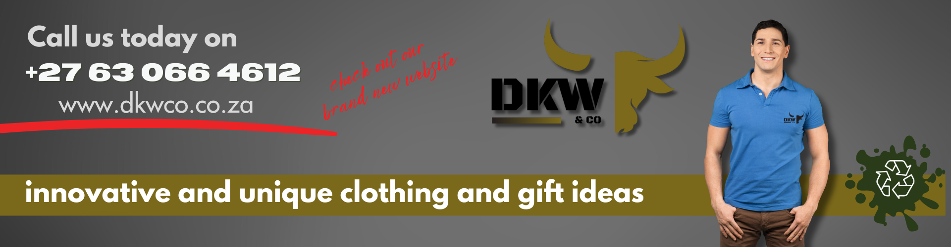 Looking for new ideas for corporate gifts, promotional items, branded corporate, branded baby rompers, workwear - we've got you covered Contact Us Custom Print Work Bar Mat 250mm x 880mm Promotional Items Apparel Workwear Caps Chef Wear Sport Gifting Bags Display Branding Solutions DKW Co Clothing Promotional Clothing and Gifts We invite you to contact us for an extensive range of selected clothing and gifts – ranging from clocks to folders, pens to calculators and special items through to our vast range of shirts, caps and other garments as well as outdoor products. View some of our Latest Products SA Flag Can Cooler 500Ml Mini Cup Trophy Acceso Earbud Set A5 Tuscany Pu Notebook Champion Layflat Pull-Up Banner Double-Sided Incl Kit Bianca Mug Gift Box Bottle Helux Volkano Pumped Series Wearable Speaker With Armband Wallet With Coin Purse Alex Varga Tempest Umbrella White Windscreen Visor Sportec 4 – 750Ml Budget Range Sports Bottle Contact Details Chante Badenhorst +27 63 066 4612 admin@dkwco.co.za Shaun Geldenhuys +27 78 217 7442 admin@dkwco.co.za